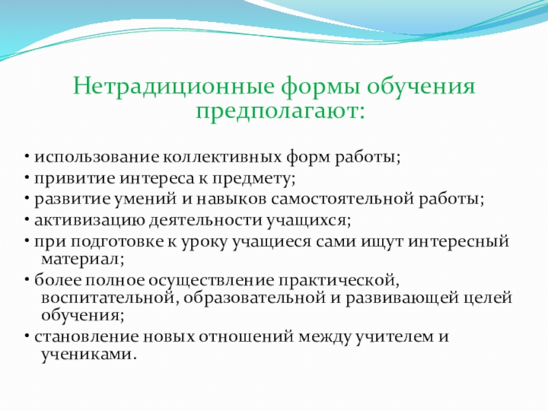 Слайд 6 Нетрадиционные формы обучения предполагают: