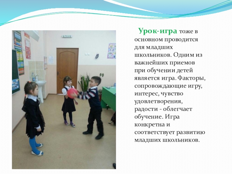Слайд 14 Урок-игра тоже в основном проводится для младших школьников.