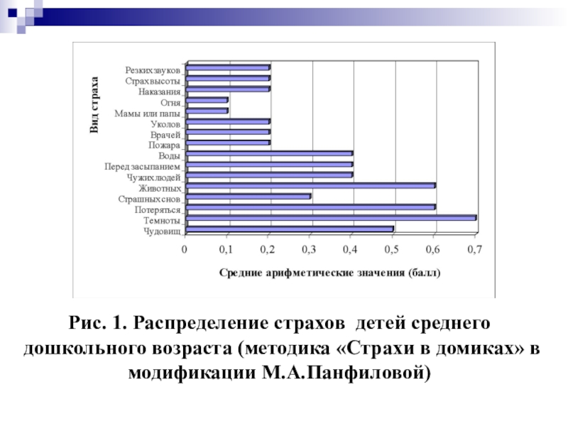 Слайд 6Рис. 1. Распределение страхов детей среднего дошкольного возраста (методика «Страхи в