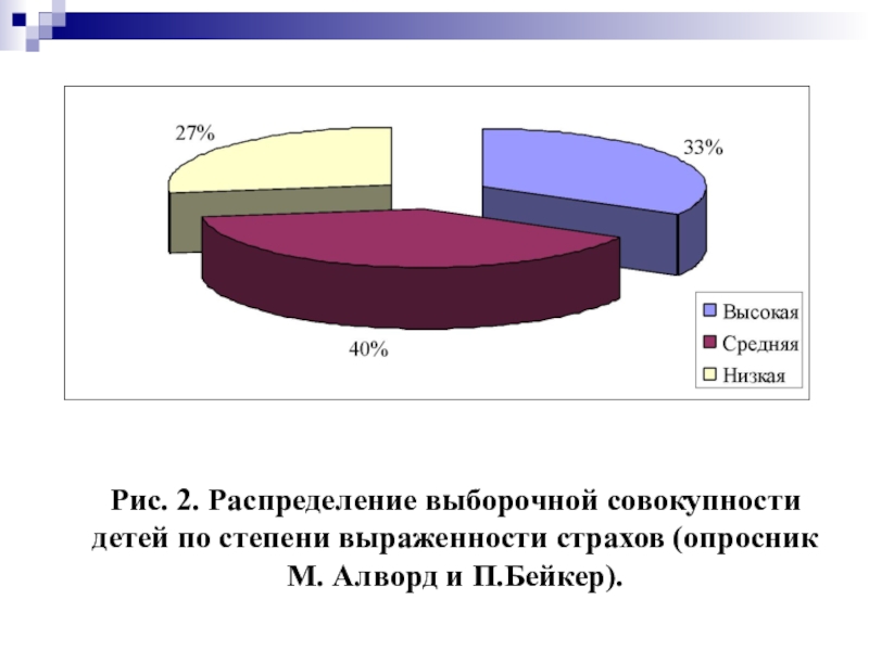 Слайд 7Рис. 2. Распределение выборочной совокупности детей по степени выраженности страхов (опросник