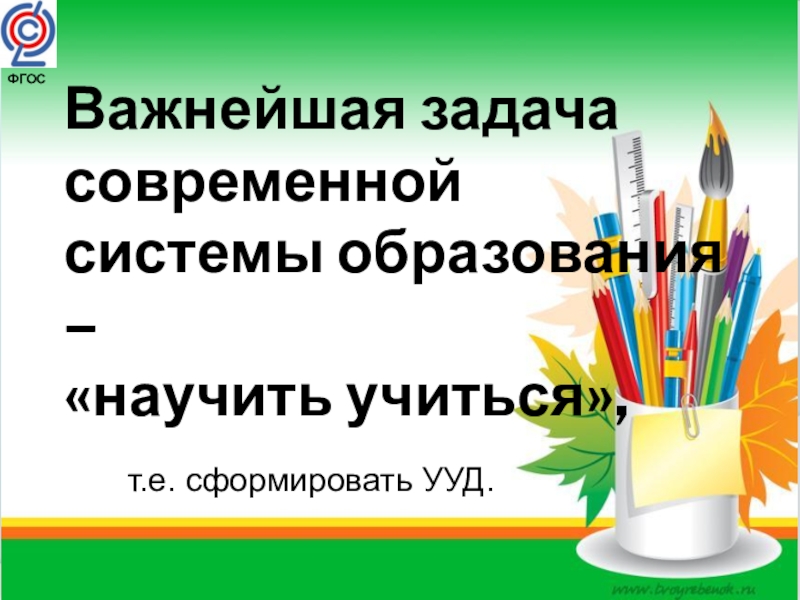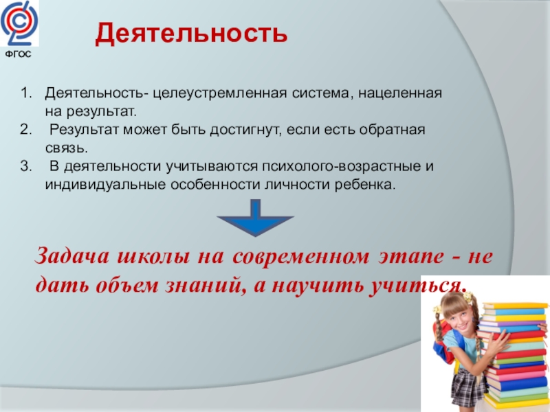 Задача школы на современном этапе - не дать объем знаний, а научить учиться.