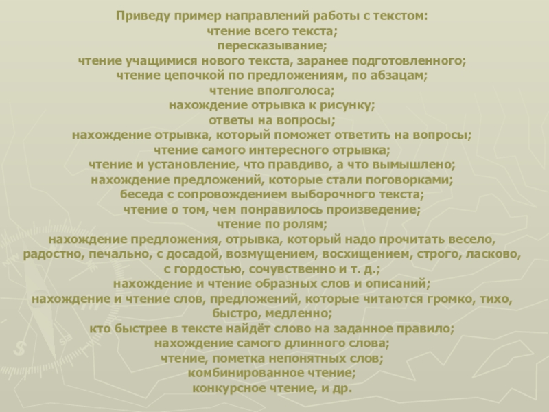 Слайд 22Приведу пример направлений работы с текстом: