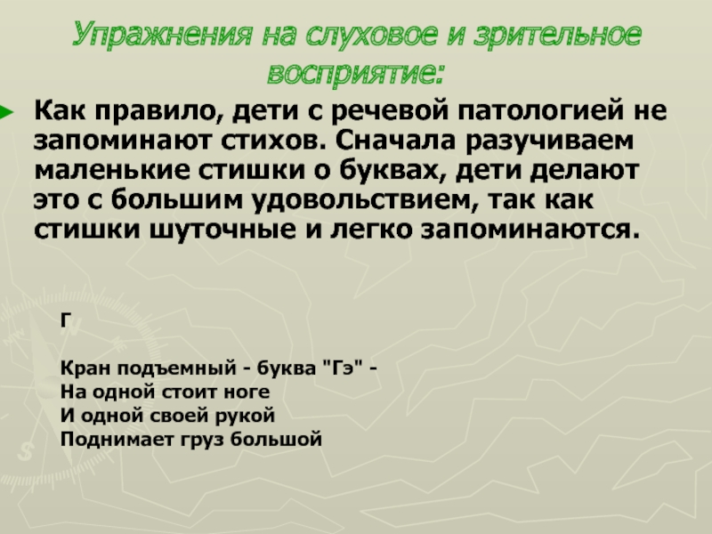Слайд 15Упражнения на слуховое и зрительное восприятие: