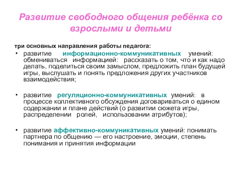 Слайд 8Развитие свободного общения ребёнка со взрослыми и детьми