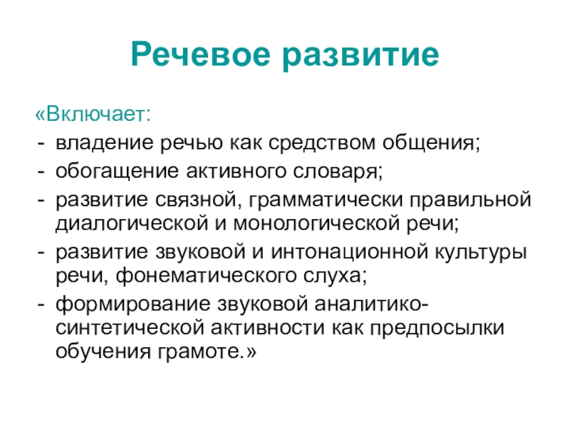 окружающими на основе овладения литературным языком своего народа, становление начальной коммуникативной компетентности ребенка, т.е.