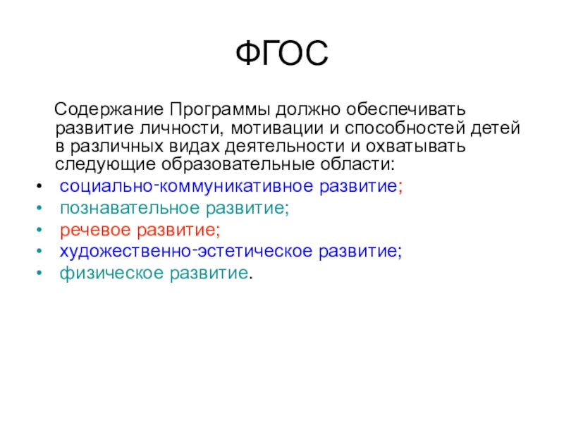 Содержание Программы должно обеспечивать развитие личности, мотивации и способностей