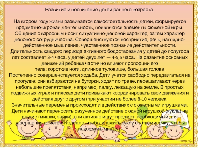 Слайд 2Развитие и воспитание детей раннего возраста.
