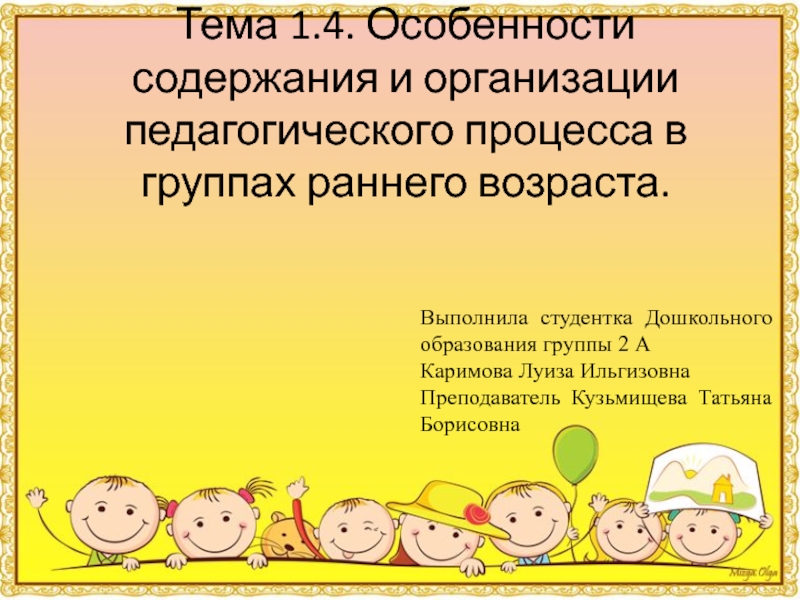 Слайд 1Тема 1.4. Особенности содержания и организации педагогического процесса в группах раннего