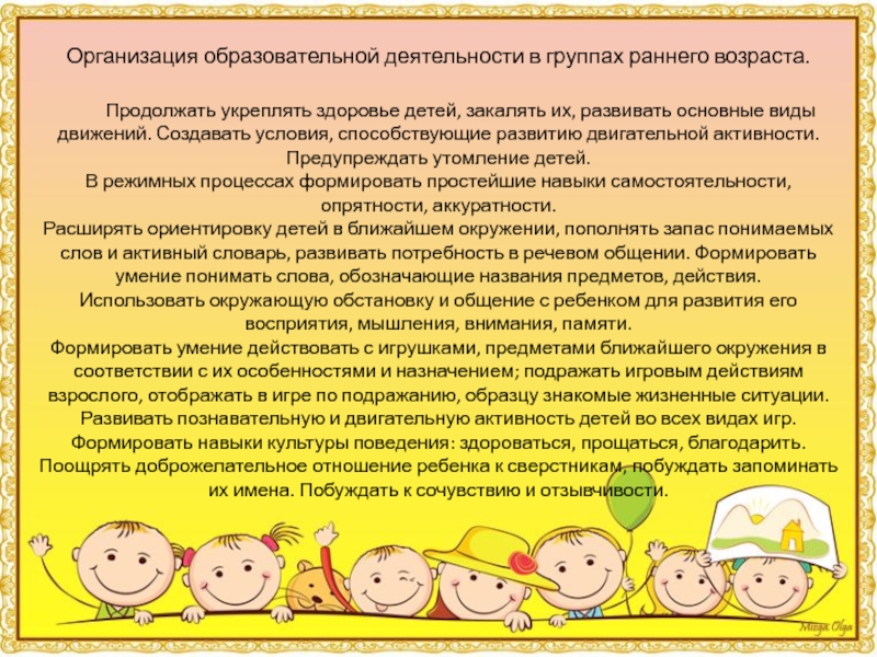 Слайд 6Организация образовательной деятельности в группах раннего возраста.