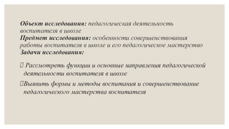 Выявить формы и методы воспитания и совершенствование педагогического мастерства воспитателя