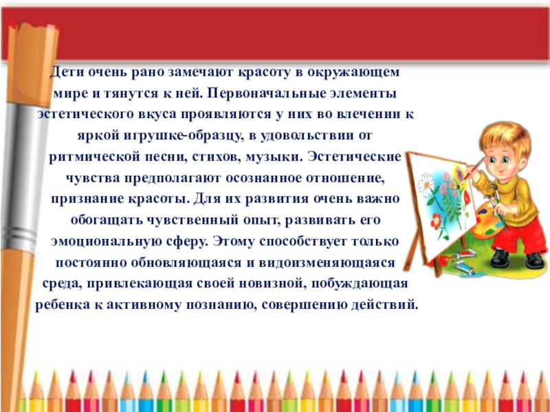 Слайд 3Дети очень рано замечают красоту в окружающем мире и тянутся к