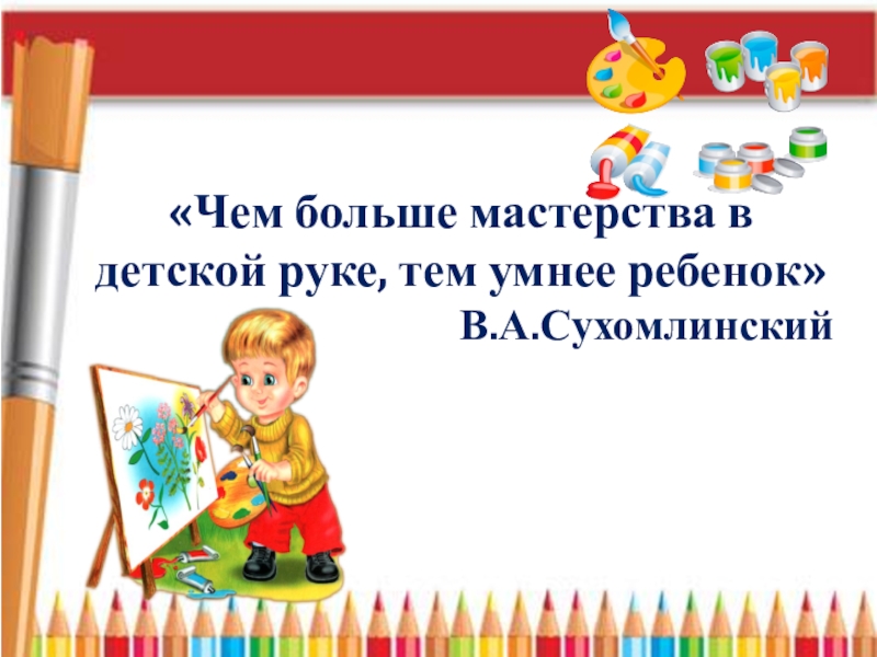 Слайд 2«Чем больше мастерства в детской руке, тем умнее ребенок»
