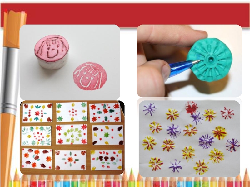 – поиск рациональных способов изображения большого количества одинаковых элементов (использование печаток, трафаретов, вырезывание из бумаги, сложенной в несколько раз, лепка с помощью форм и пр.)