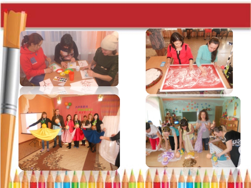 при работе в данном направлении используются различные приемы и формы: дни открытых дверей; организация выставок - конкурсов, поделки для которых изготавливаются совместно родителями и детьми; привлекаем их к участию в праздниках, театральных спектаклях, к изготовлению костюмов. Все это помогает сделать их своими союзниками и единомышленниками в деле воспитания детей.