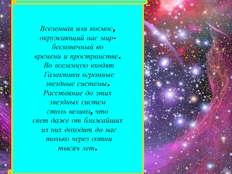 Слайд 5Вселенная или космос,