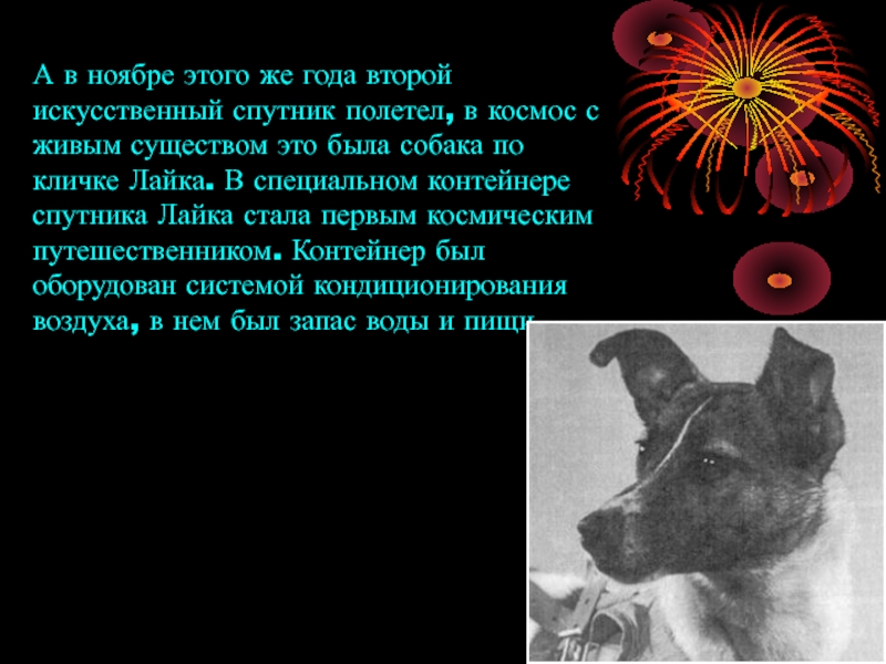 Слайд 11А в ноябре этого же года второй искусственный спутник полетел, в