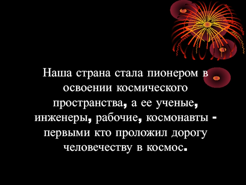 Слайд 8Наша страна стала пионером в освоении космического пространства, а ее ученые,