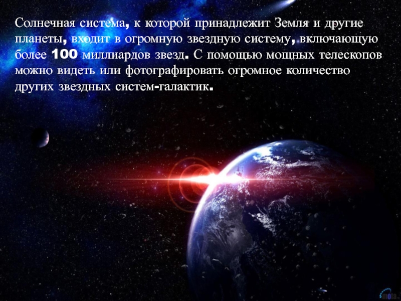 Слайд 6Солнечная система, к которой принадлежит Земля и другие планеты, входит в
