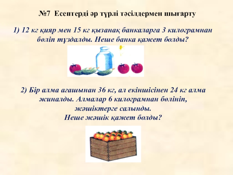 2) Бір алма ағашынан 36 кг, ал екіншісінен 24 кг алма