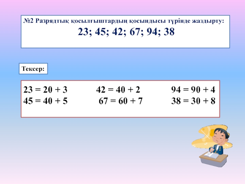 №2 Разрядтық қосылғыштардың қосындысы түрінде жаздырту: