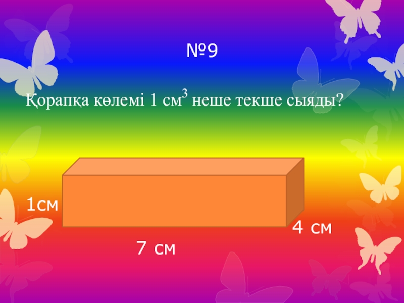 №9Қорапқа көлемі 1 см3 неше текше сыяды?7 см4 см1см
