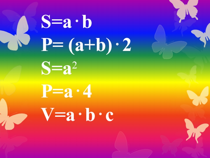Слайд 13S=ab P= (a+b)2 S=a2 P=a4 V=abc