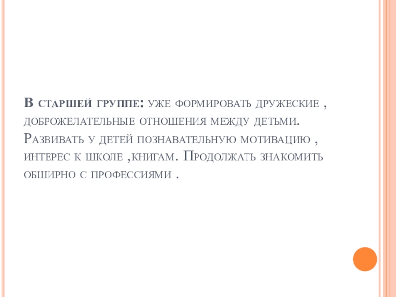 Слайд 7В старшей группе: уже формировать дружеские , доброжелательные отношения между детьми.