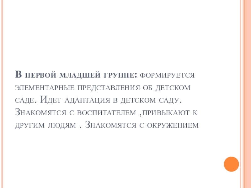 Слайд 4В первой младшей группе: формируется элементарные представления об детском саде. Идет