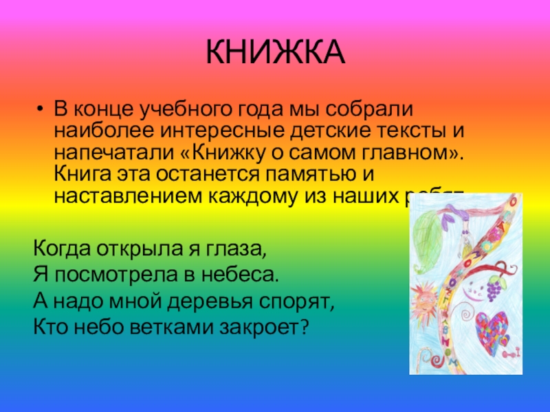 день они приносили всё новые и новые стихи, стали создавать свои авторские книжки–малышки, при встрече засыпали новыми сочинениями.