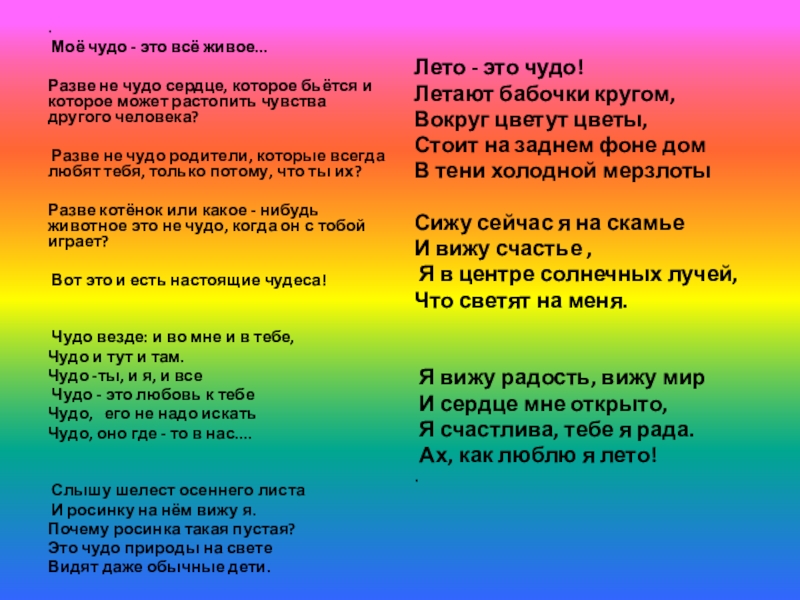 ребят. Увидеть чудо в простых вещах и явлениях жизни – главная цель этого занятия. Вот мысли ребят.