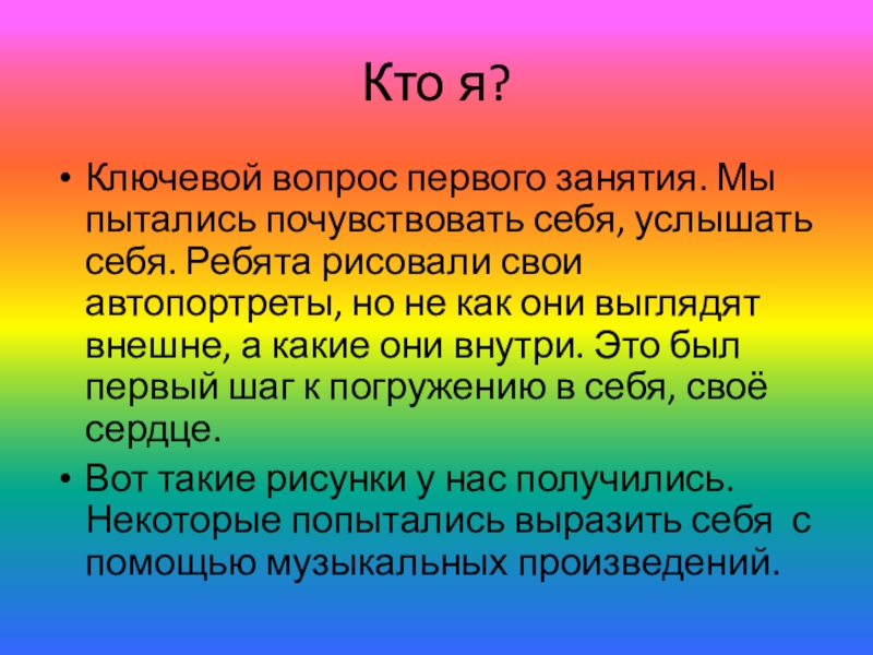 Слайд 22Поэтому главный вопрос на занятиях: что вы чувствовали и почему.
