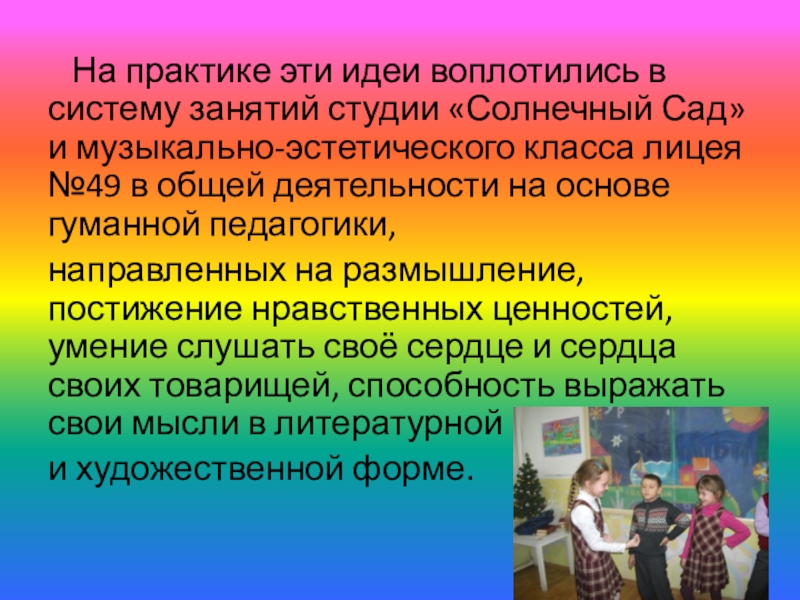 «Солнечный Сад» и музыкально-эстетического класса лицея №49 в общей деятельности на основе гуманной педагогики,