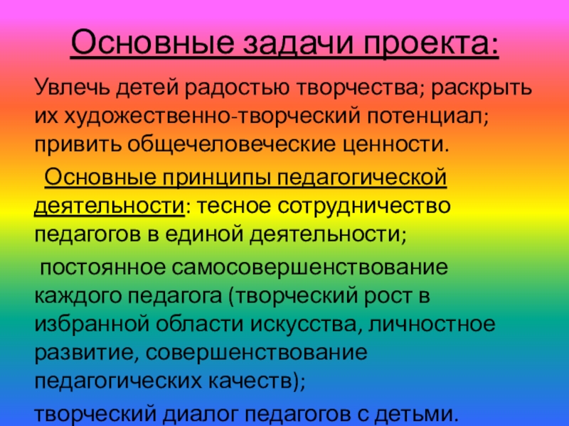 Увлечь детей радостью творчества; раскрыть их художественно-творческий потенциал; привить