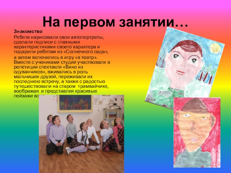 а затем включились в игру «в театр». Вместе с учениками студии участвовали в репетиции спектакля «Вино из одуванчиков», вживались в роль мальчишек друзей, переживали их последнюю встречу, а также с радостью путешествовали на старом трамвайчике, воображая и представляя красивые пейзажи вокруг.