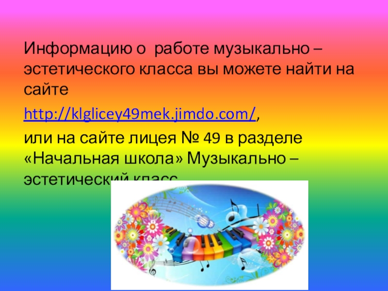 Слайд 42Информацию о работе музыкально – эстетического класса вы можете найти на