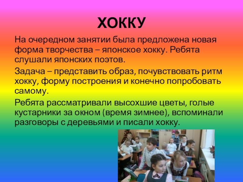 На очередном занятии была предложена новая форма творчества – японское хокку.