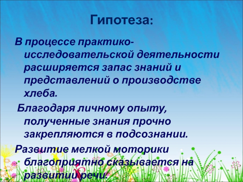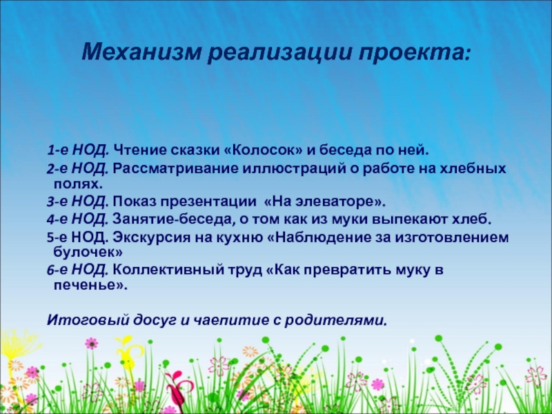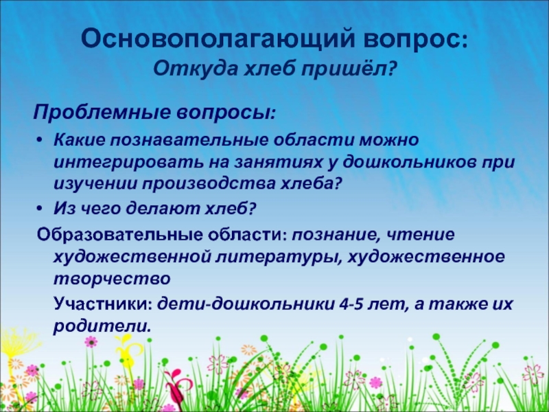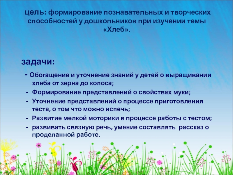- Обогащение и уточнение знаний у детей о выращивании хлеба от зерна до колоса;