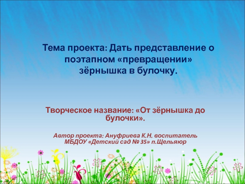 Автор проекта: Ануфриева К.Н. воспитатель МБДОУ «Детский сад № 35» п.Щельяюр