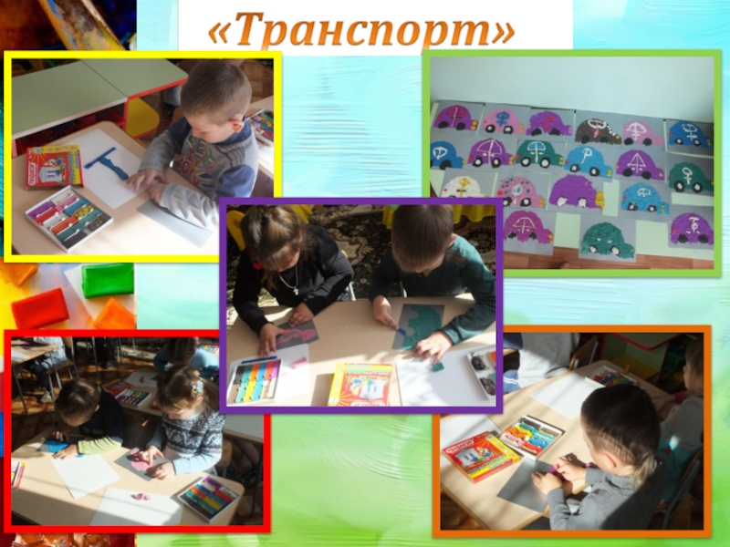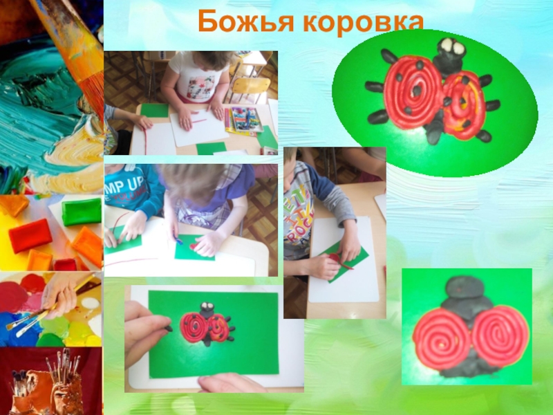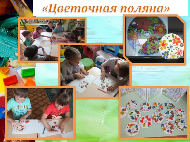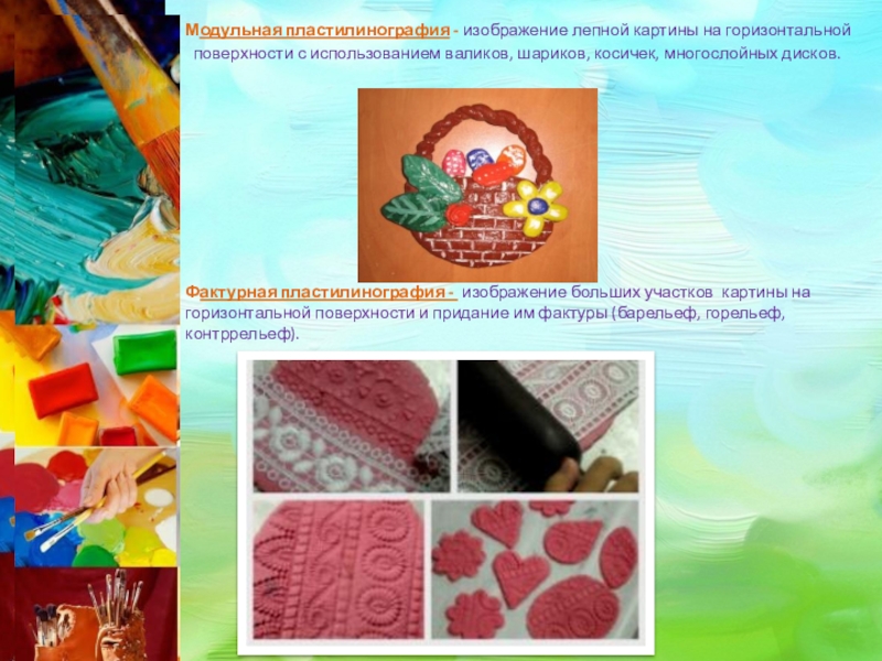 Слайд 12Модульная пластилинография - изображение лепной картины на горизонтальной
