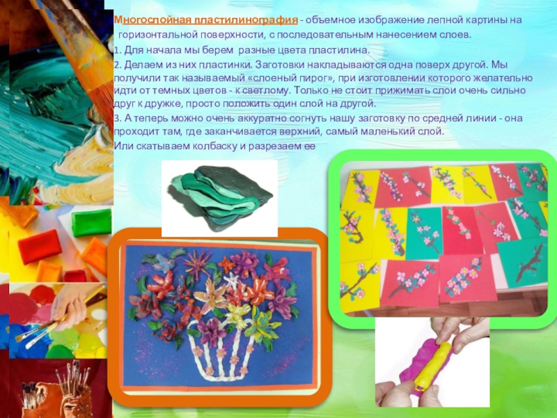 Слайд 11Многослойная пластилинография - объемное изображение лепной картины на