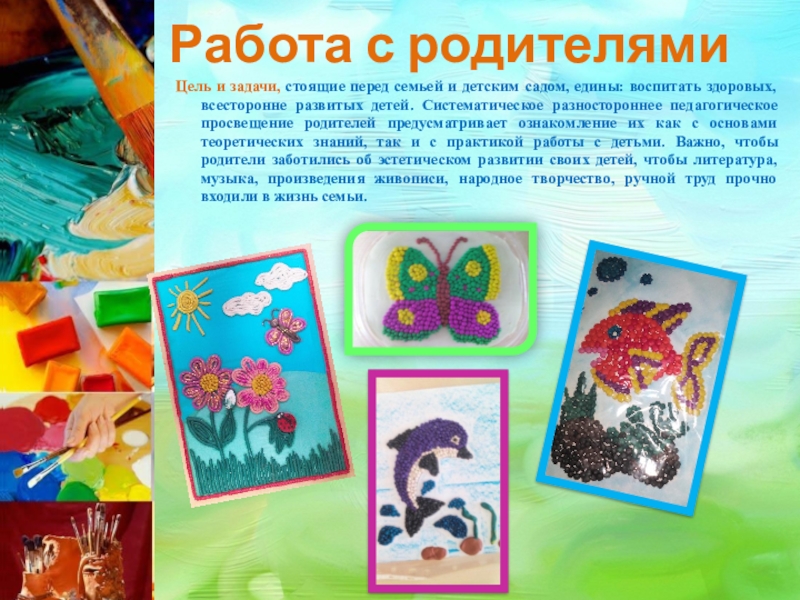 Слайд 13Мозаичная пластилинография - изображение лепной картины на горизонтальной