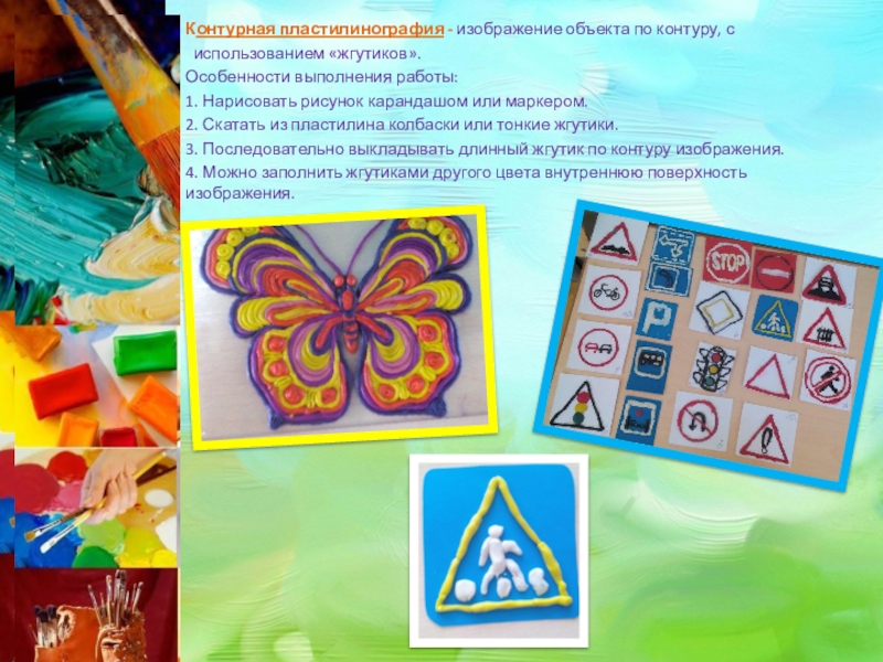 Слайд 10Контурная пластилинография - изображение объекта по контуру, с