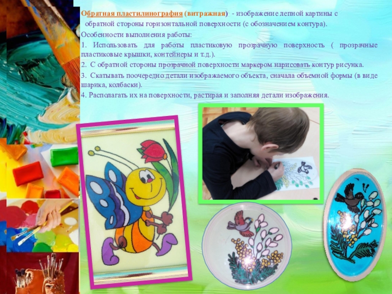 Слайд 9Обратная пластилинография (витражная) - изображение лепной картины с