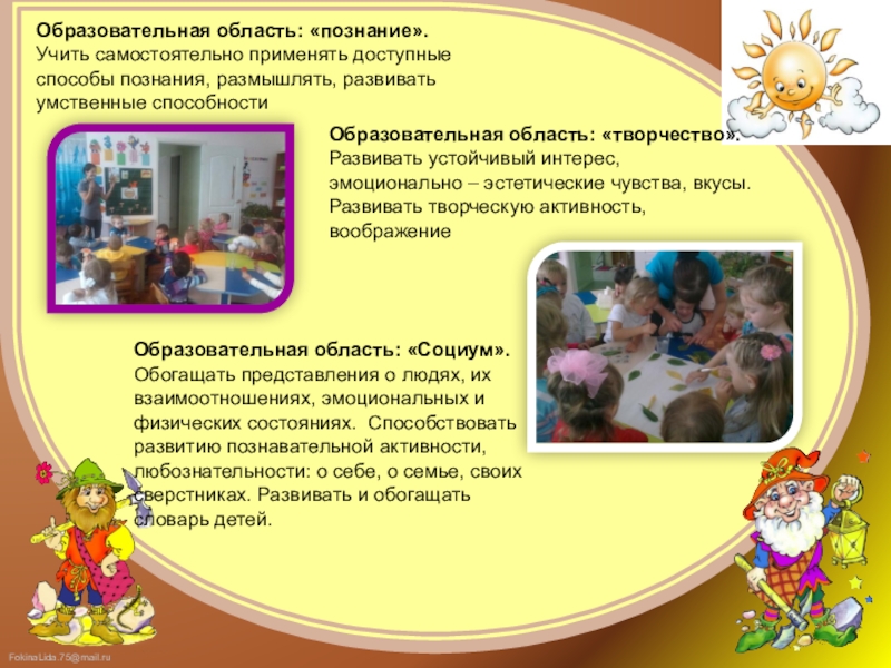 Цели программы были реализованы в процессе разнообразных видов деятельности: игровой,коммуникативной, трудовой, познавательно-исследовательской, продуктивной, музыкально-художественной