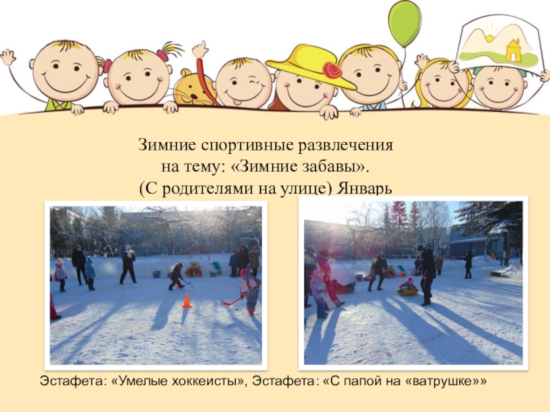 Эстафета: «Умелые хоккеисты», Эстафета: «С папой на «ватрушке»»