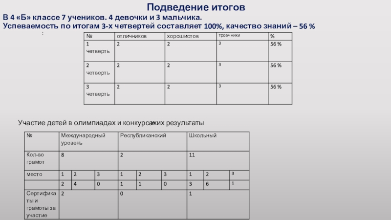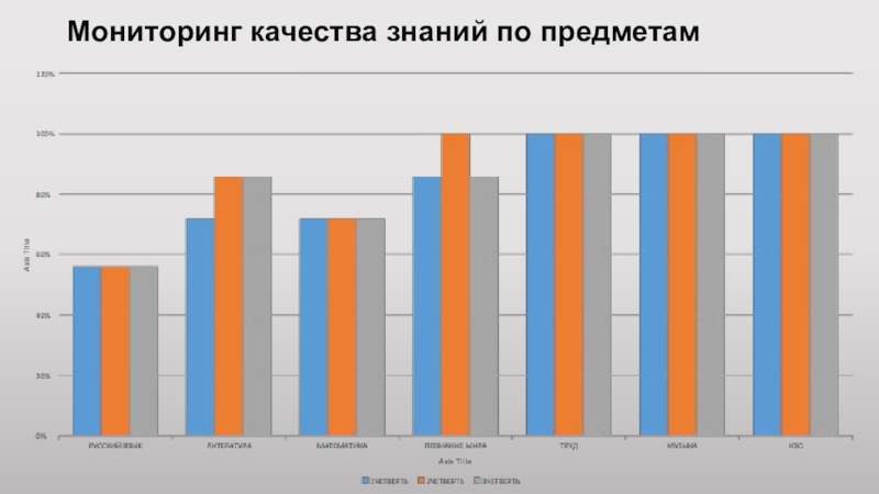 Показать качество знаний по четвертям, достижения учителя и обучаемых.