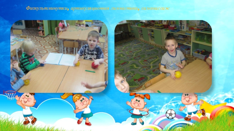 Слайд 6Физкультминутки, артикуляционная гимнастика, самомассаж