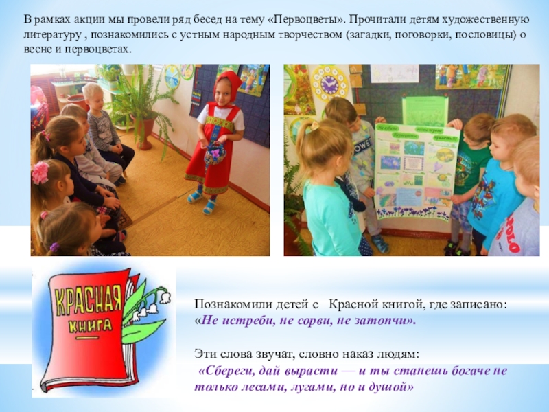 Познакомили детей с Красной книгой, где записано: «Не истреби, не сорви, не затопчи».