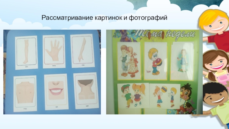 • Рассматривание обучающих карточек: «Тело человека», «Что такое