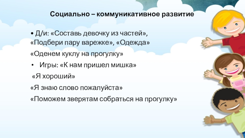 • Д/и: «Составь девочку из частей», «Подбери пару